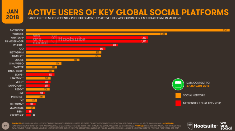 Secondo la Global Digital 2018 attraverso un’indagine condotta da We Are Social in collaborazione con Hootsuite, la piattaforma di social media management più conosciuta a livello mondiale, possiamo conoscere i principali trend che riguardano i social media e la loro diffusione nel nostro Paese e nel mondo.